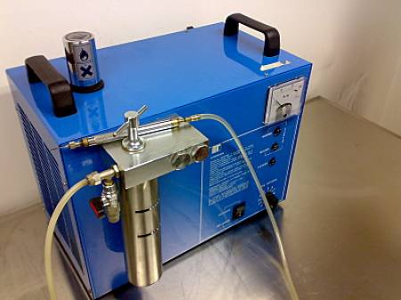 Saldatore bruciatore a cartuccia cannello saldatrice a gas fiamma ossidrica usato Casale d'Ercole. Saldatrice ossidrica ad alcol metilico. Sistema elettronico di visione livello liquido elettrolitico. Controllo automatico pressione lavoro.