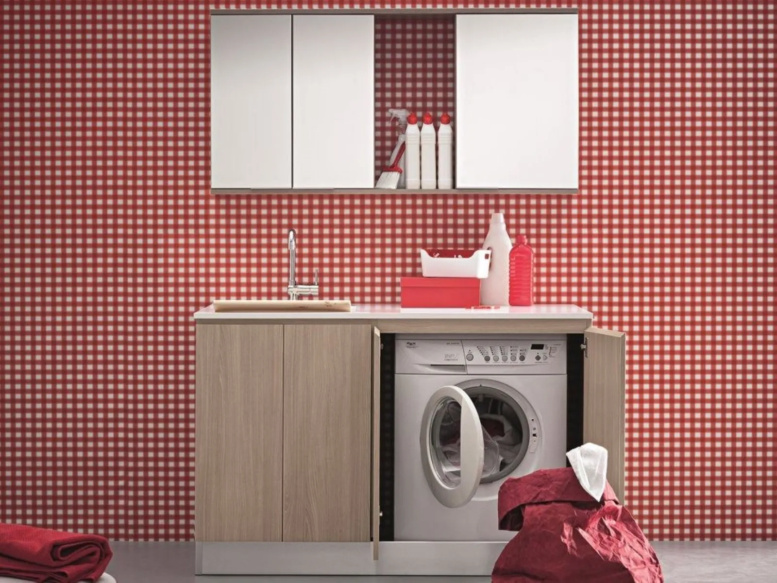 Dinamica azienda nata nel 198 Birex in pochi anni è diventata una realtà specializzata nel settore dell'arredamento di bagni e locali lavanderie e ingresso. LAVATOIO SOSPESO CON LAVATRICE A VISTA E AMPIA ARMADIATURA composizione Idrobox composta da base a incasso con anta a ribalta, base a .